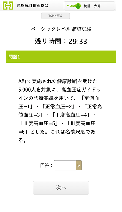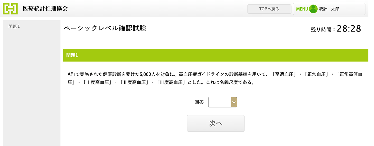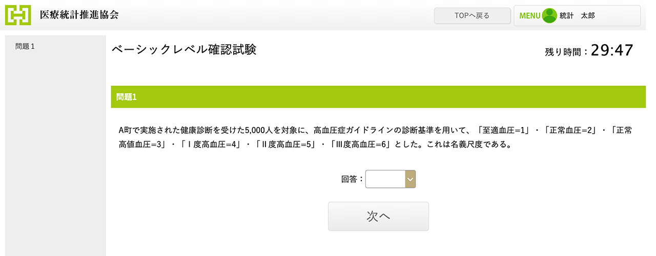 Level.1の出題内容は「医療統計・ベーシックコース」で学習する内容です。