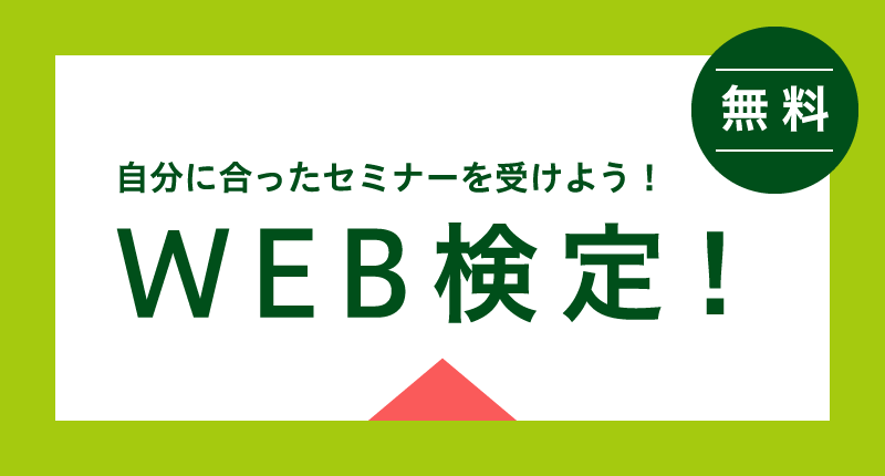 オンラインセミナーが2021年10月に開講し、コロナ禍が明け次第、来年度以降対面型セミナーも開講の予定です。また、コース選択に迷った方向けに、無料のWEB検定も受けられます。
